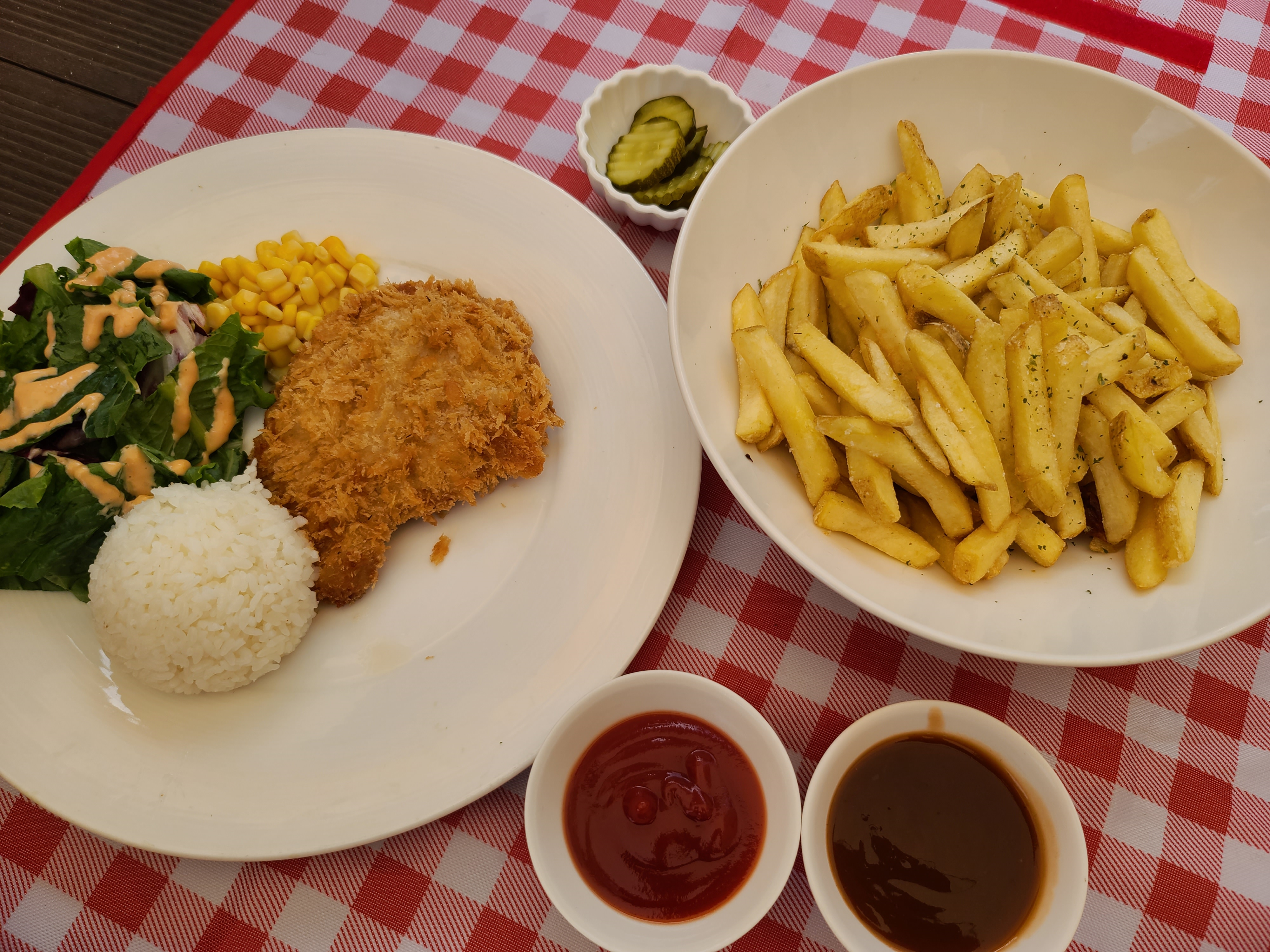 메뉴는 1인1메뉴가 원칙이라고 하여 돈가스와 감자튀김을 시겼습니다..