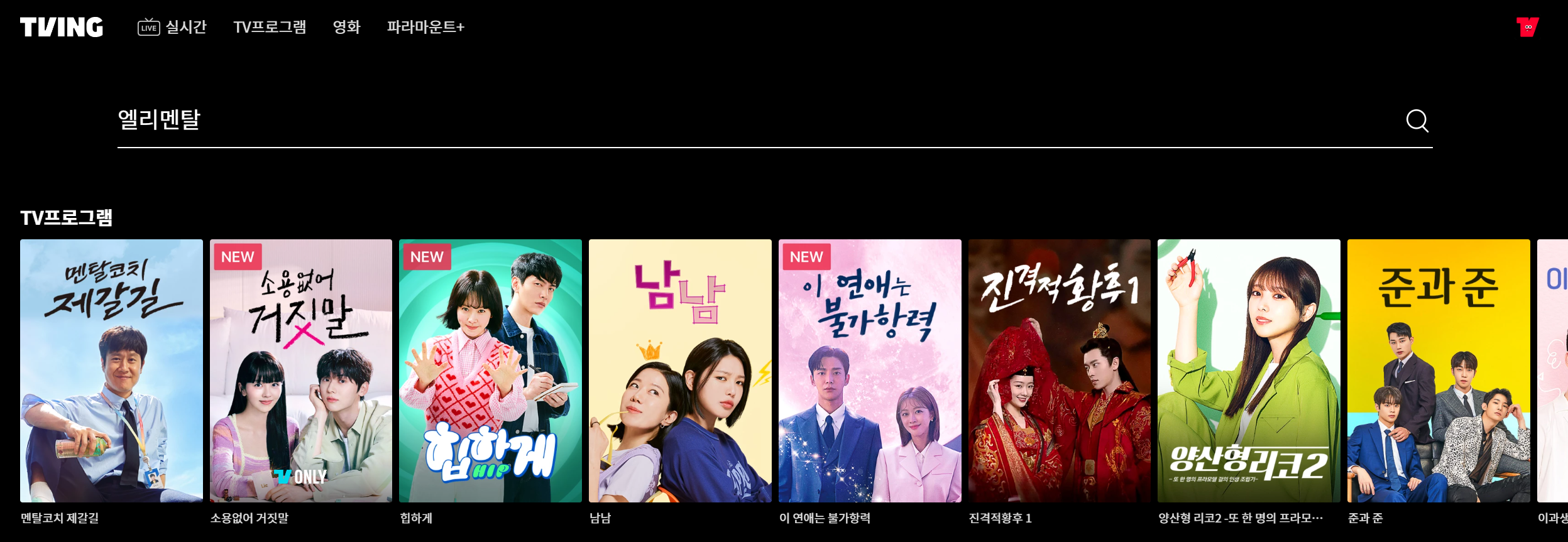 티빙에서 엘리멘탈을 검색하면 관련콘텐츠가 없습니다.