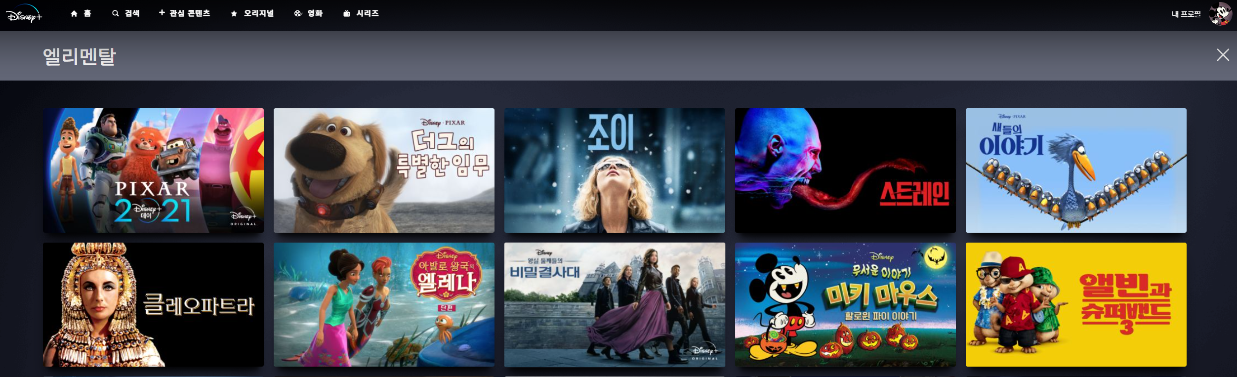 넷플릭스에서는 엘리멘탈을 검색하면 관련콘텐츠가 없습니다.