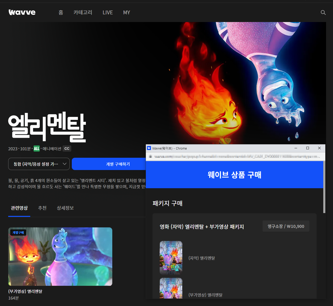 웨이브에서는 10,900원에 영화 엘리멘탈 시청이 가능합니다.