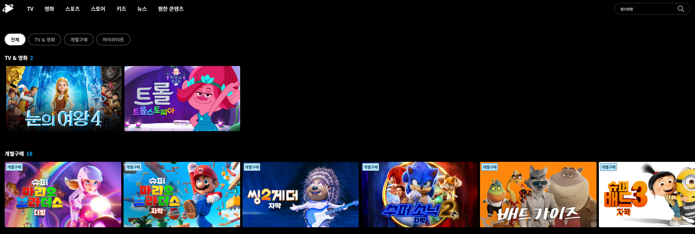 티빙에서 엘리멘탈을 검색하면 관련콘텐츠가 없습니다.