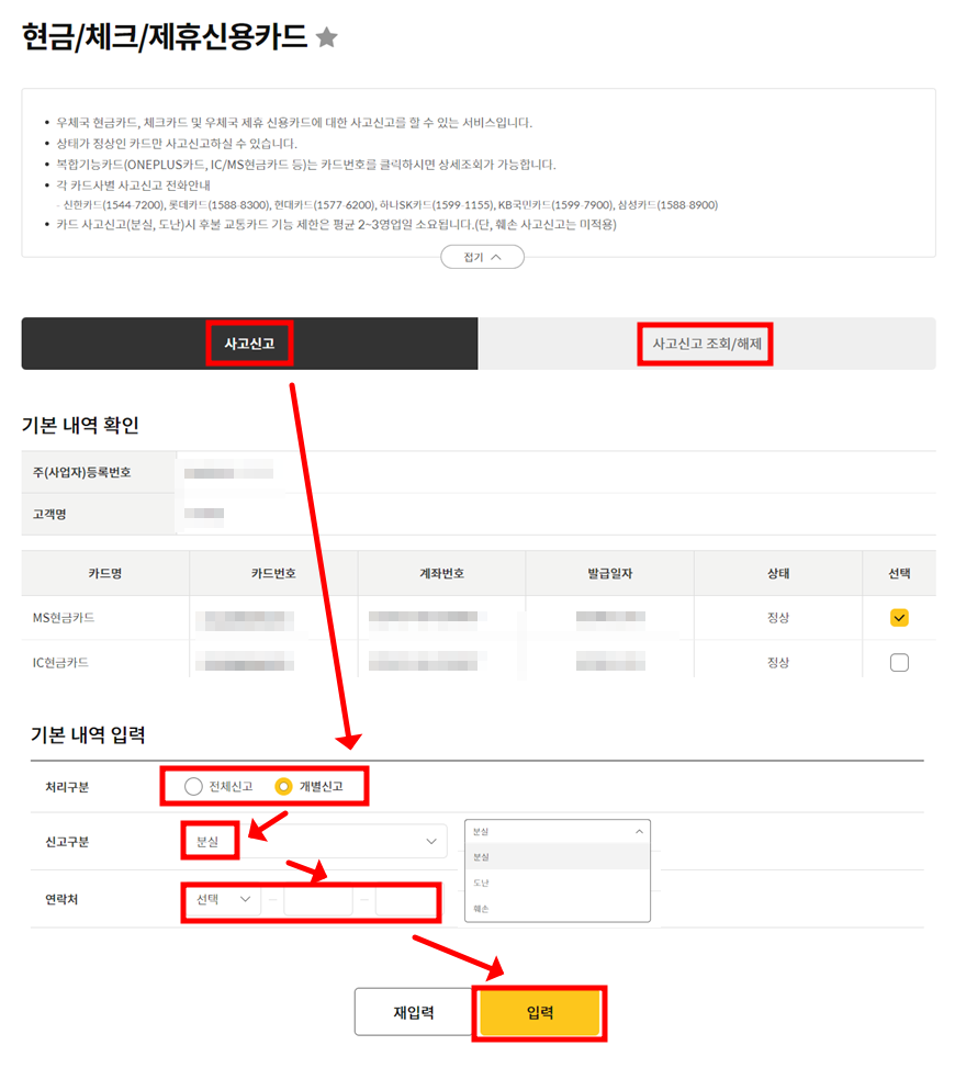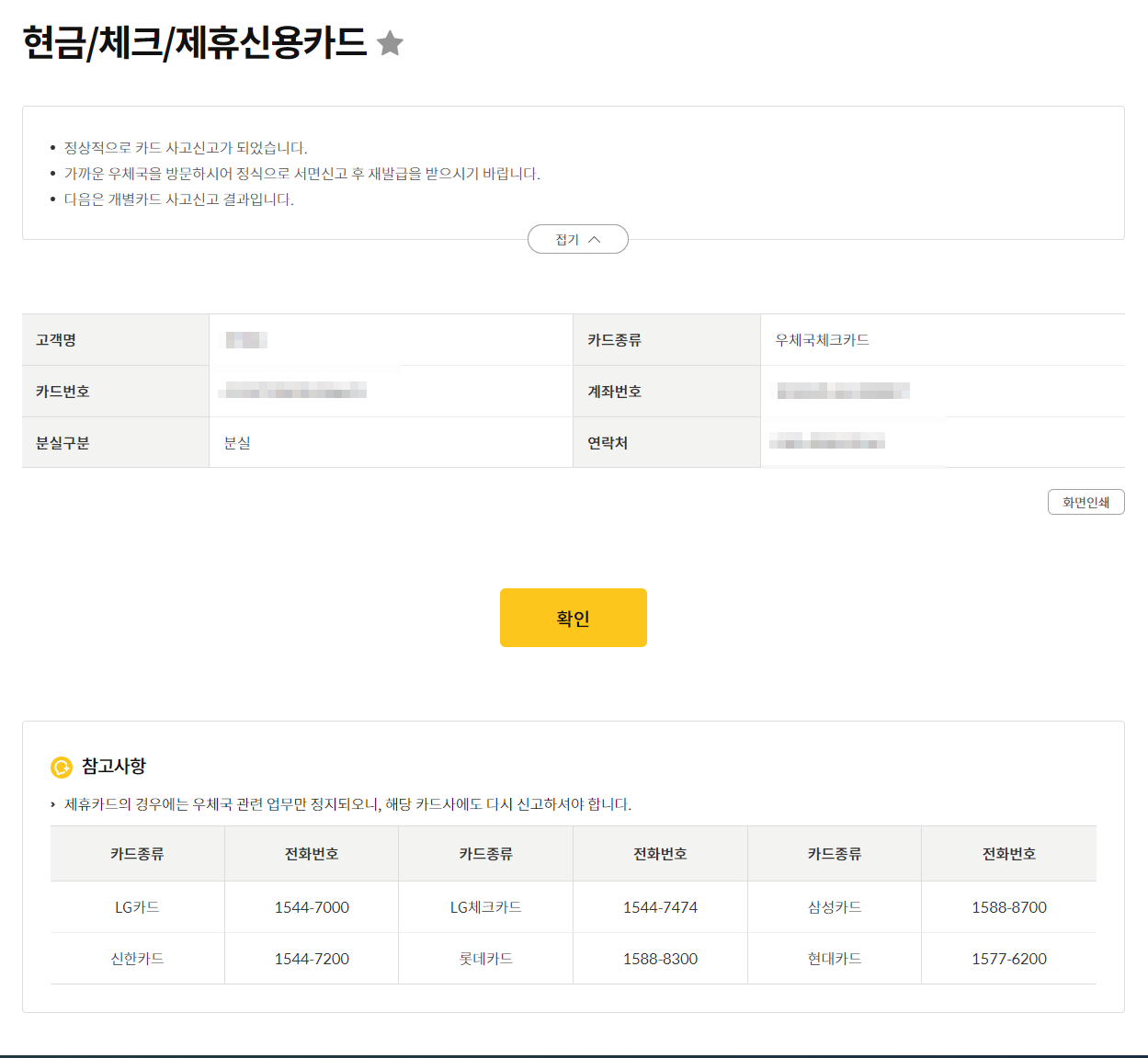 우체국 체크카드 분실 신고 재발급까지