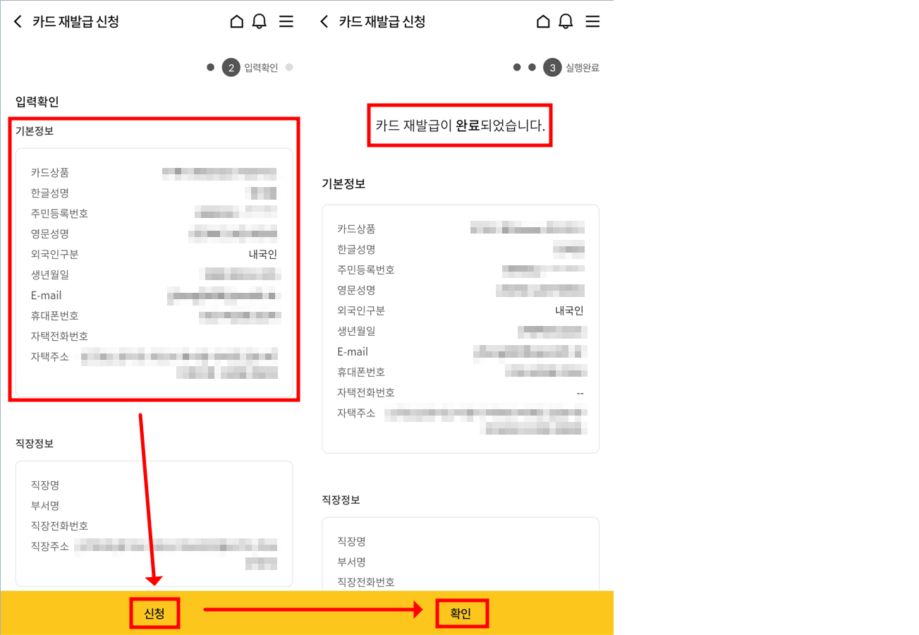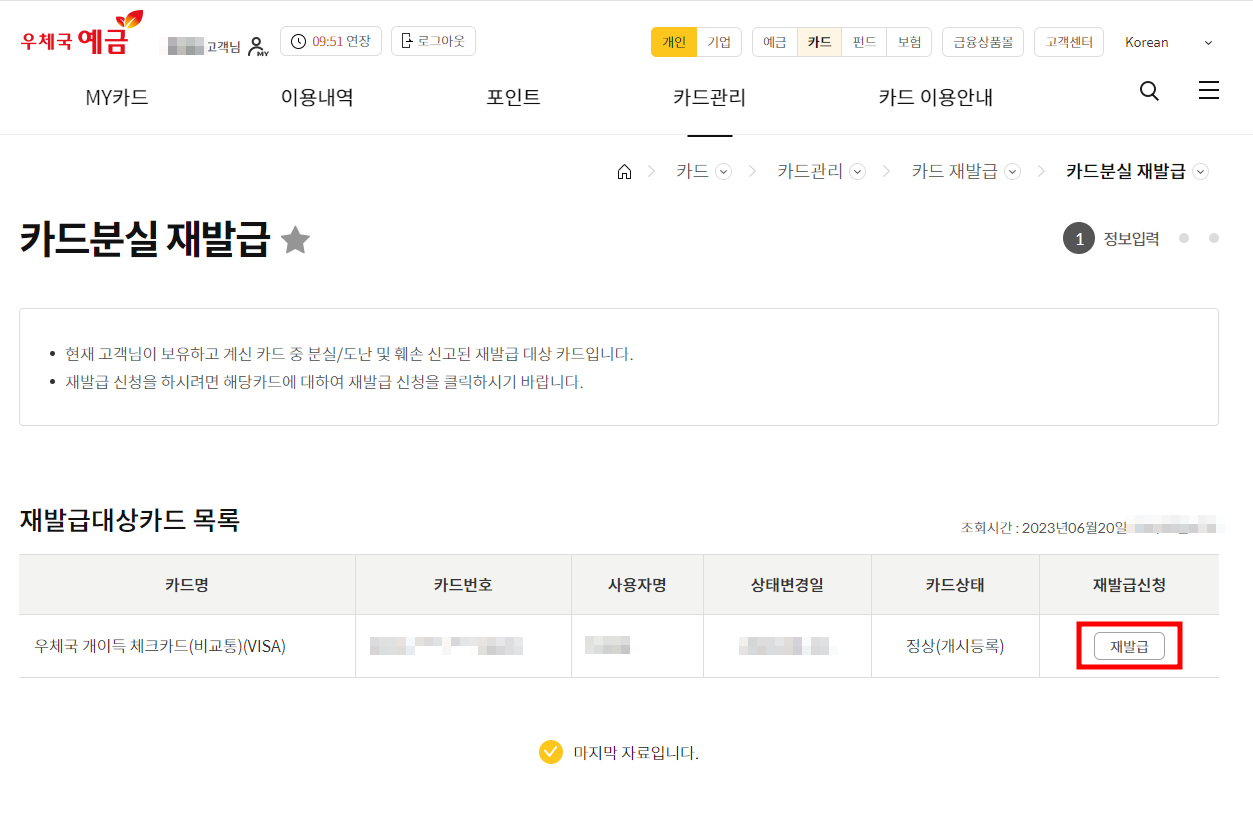 2. 분실신고 되어있는 카드 재발급 신청