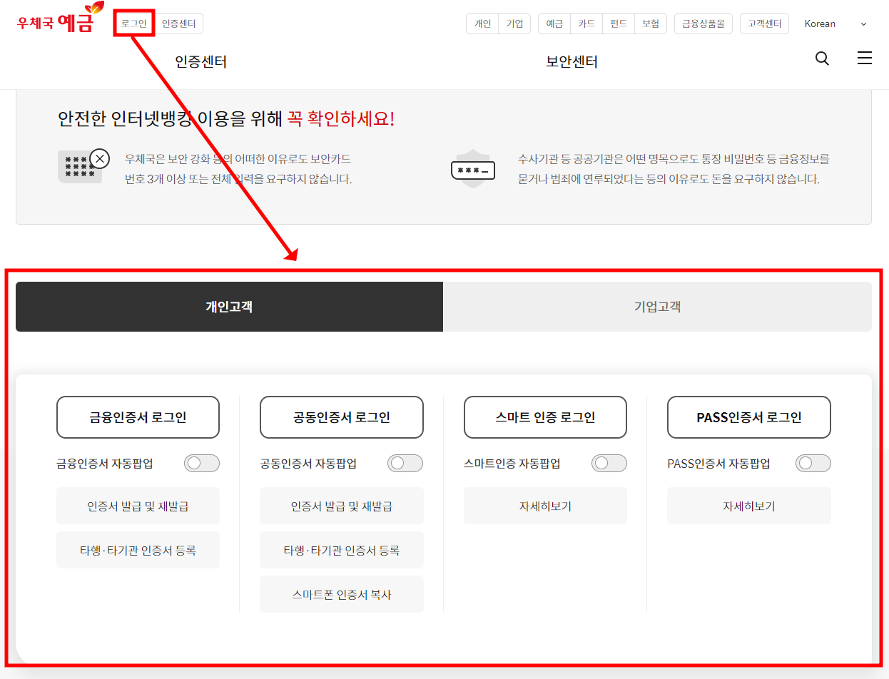 1. 우체국 예금 홈페이지 로그인