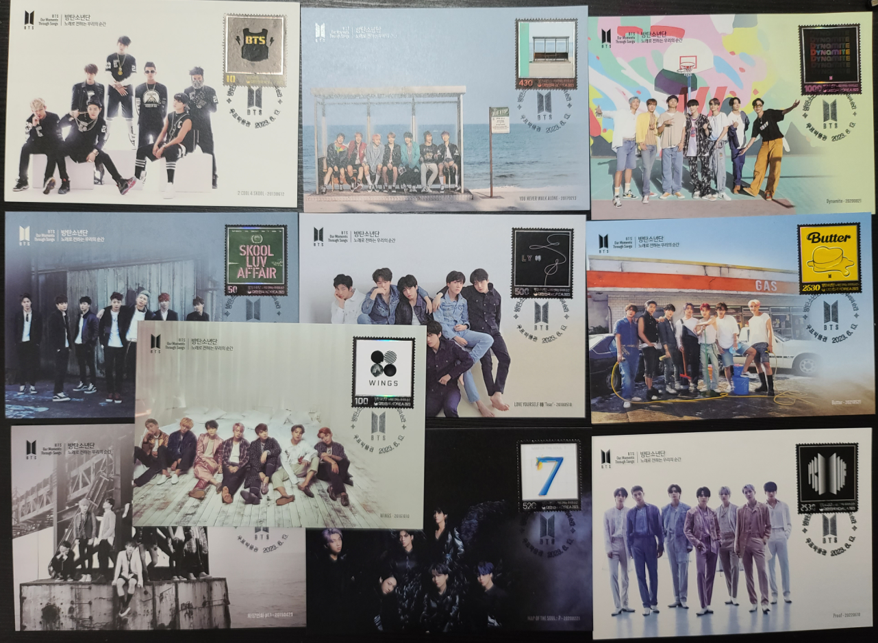 10종의 우표로, 방탄소년단 앨범이미지로 구성되어있습니다.