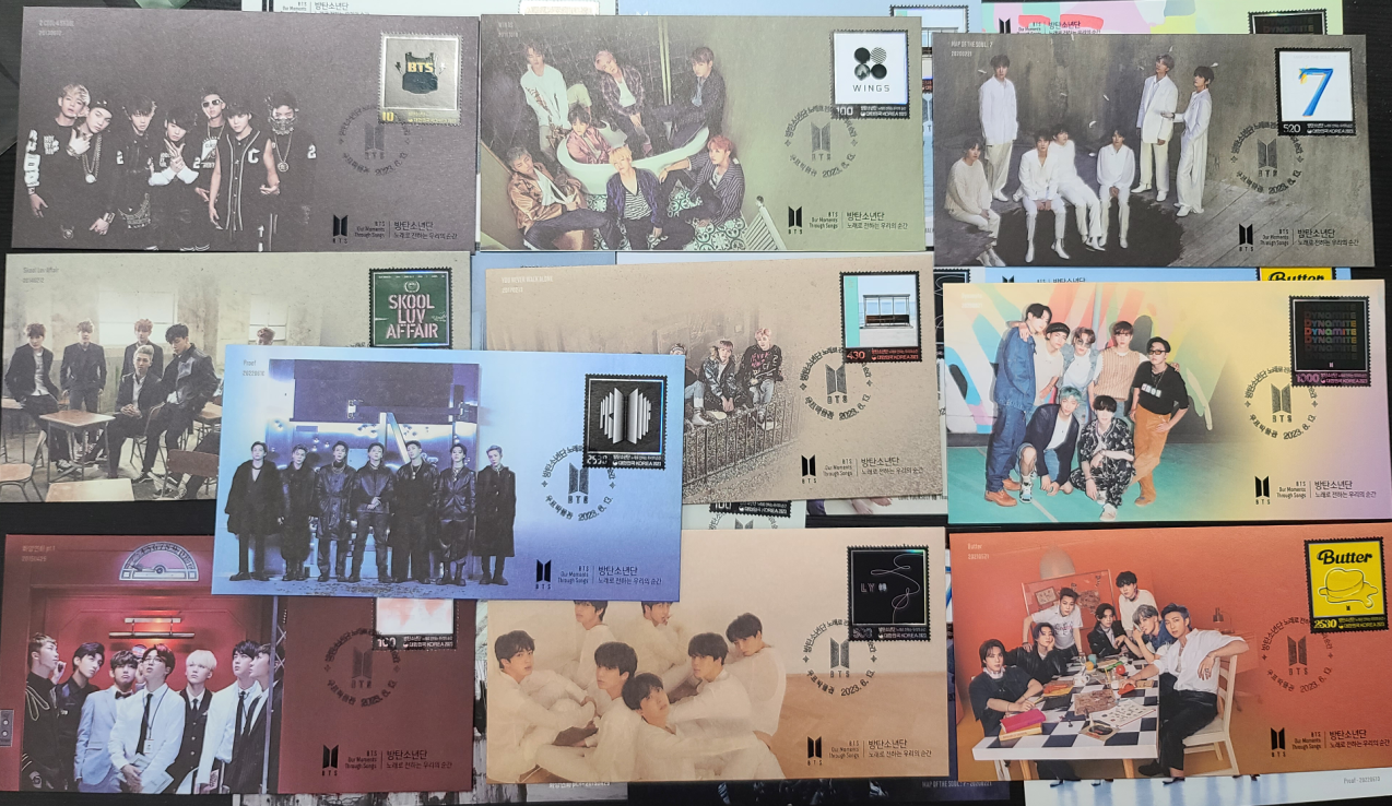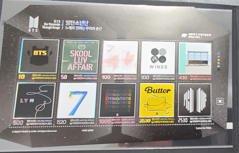 10종의 우표로, 방탄소년단 앨범이미지로 구성되어있습니다.