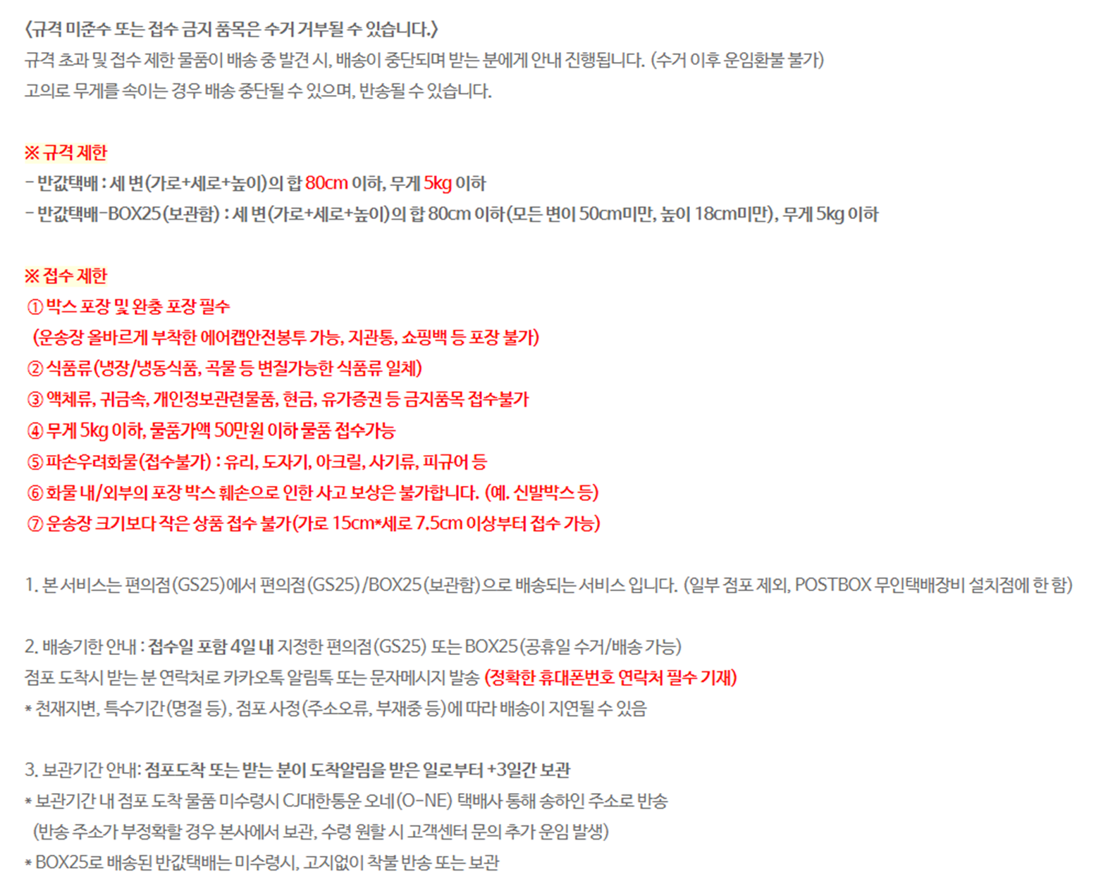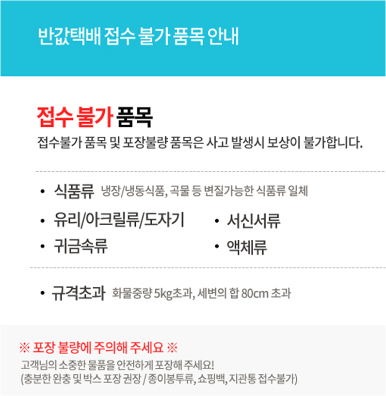 - 식품류, 편지, 서류등 접수불가